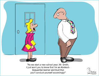I realize this review of research is by no means exhaustive, however, are these assumptions any different than claiming boys are more tactile and girls are more verbal? I think educators must be very careful not to impose generalizations and stereotypes on their students. I don't see where this research can be generalized or trusted, two necessary components to good research. I, for one have often challenged the model of white, middle-age, red-headed women, and I intend to continue my trend!